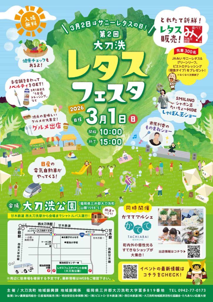 【2026/3/1開催】朝採れレタス無料プレゼントやマルシェも!大刀洗公園で「レタスフェスタ&第8回かててマルシェ」同時開催