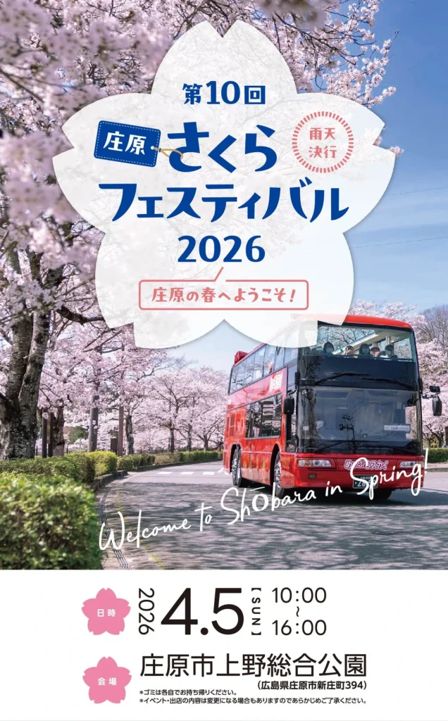 【2026/4/5開催】第10回庄原さくらフェスティバル|復活のオープントップバスやSUP体験で春を満喫![家族で楽しむ公園ピクニック]