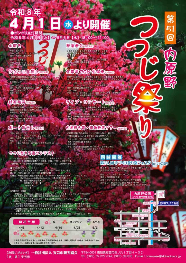 【高知・安芸市】2026/4/1〜5/6開催「内原野つつじ祭り」!歴史ある公園が1.5万本の花に染まる
