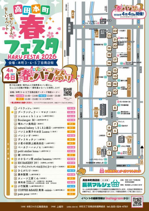 【2026/4/4開催】上越・高田本町で「春のパン祭り」!新潟・長野から23の精鋭ベーカリーがアーケード下に集結
