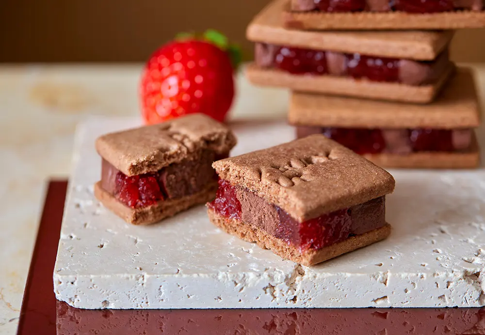 - 冬限定・いちごカカオサンド:濃厚なカカオのコクと苺の酸味が調和した、この時期だけの芳醇な味わい。
