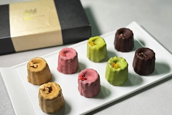 ベリーとチョコのムースの中に爽やかなレモンクリームを閉じ込め、土台には食感の良いブラウニーを。ペンギン部分はミルクチョコレートムースで、見た目も味も贅沢な6号サイズ(直径18cm)です。 - バレンタイン チョコレートカヌレ(8個入):2,300円(税込)