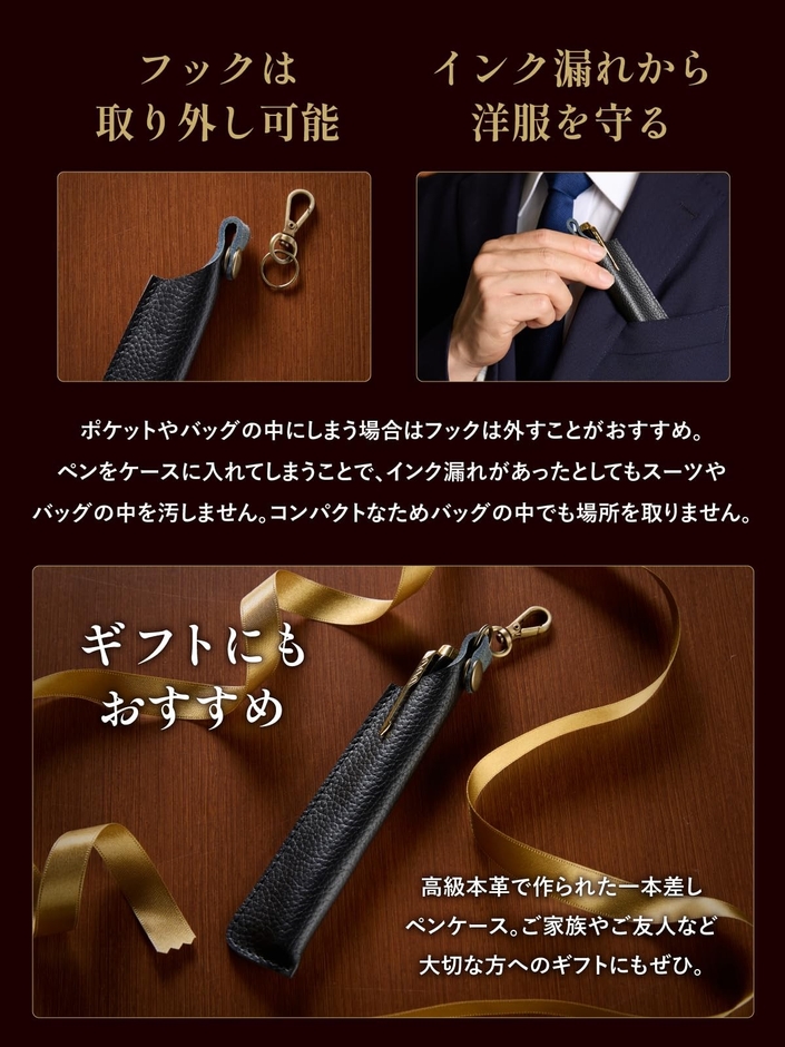 - 優れた保護性能:柔らかな本革がペン全体を包み込み、擦り傷や万が一のインク漏れから大切な持ち物を守りますッ。