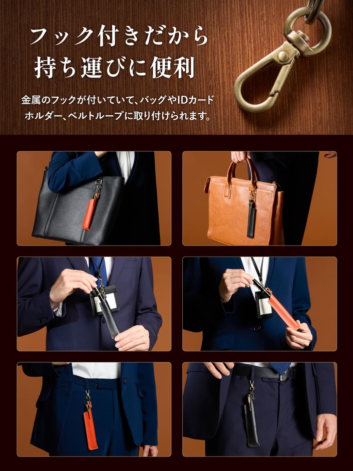 - ペン迷子を防止:バッグの持ち手やIDカードホルダー、ベルトループに装着可能。使いたい時にサッと取り出せます。