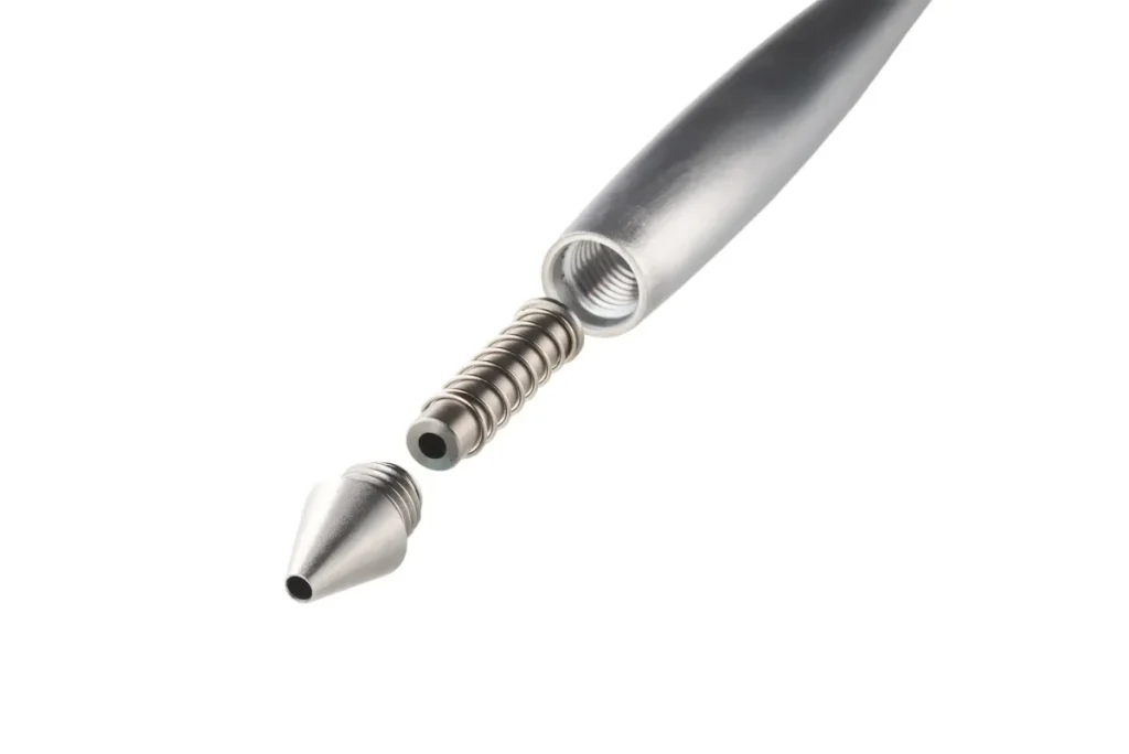 - 全パーツ自社設計のこだわり:内部の細かな部品に至るまで全て金属製。0から設計・加工を行うことで、ペン全体にシャフト加工で培ったノウハウが息づいています。