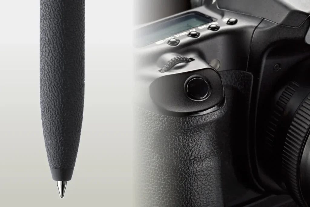 • 手に馴染む革調グリップ:カメラのグリップのような「革シボ加工」を施したロンググリップを採用。どんな持ち方でも安定した書き心地を約束してくれます。