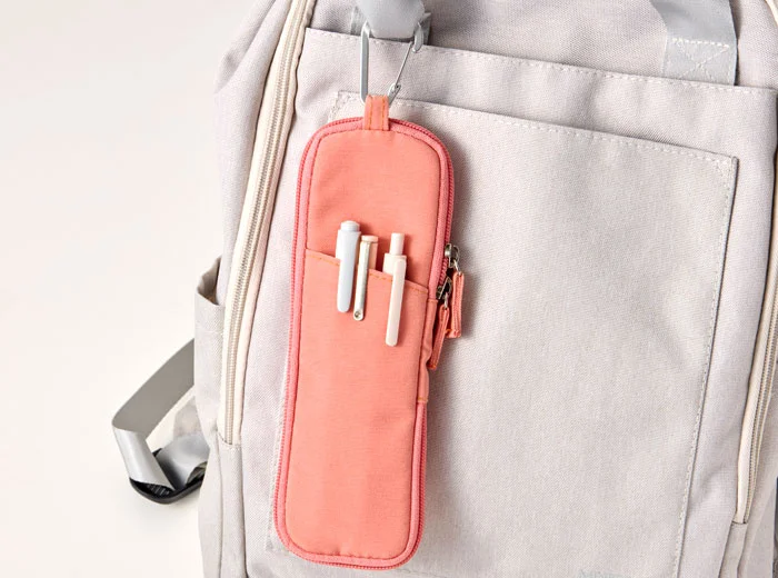 - 背面ポケット:ファスナーを開け閉めせず、頻繁に使うペンをさっと出し入れできます 。