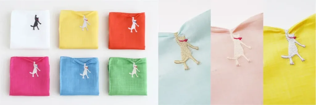 - HIKKOMI ねこ(2,750円):ハンカチの縁に猫がぶら下がっているような後ろ姿が愛らしい、不動の人気シリーズ。性別を問わず使いやすいニュアンスカラーも豊富で、ギフトとしても間違いのない選択です。