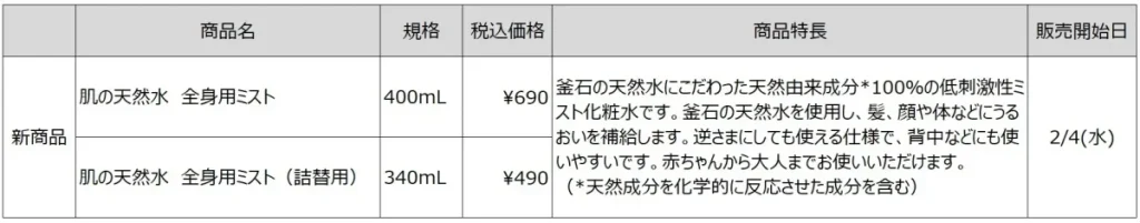 シンプルで質の高い暮らしを提案する無印良品から、家族全員の肌を優しく潤す新しい定番アイテムが誕生します。2026年2月4日(水)より、全国の店舗およびネットストアにて順次発売される『肌の天然水 全身用ミスト』。無印良品が長年大切にしてきた「釜石の天然水」の力を、最もシンプルかつ贅沢に体感できる保湿化粧水です。