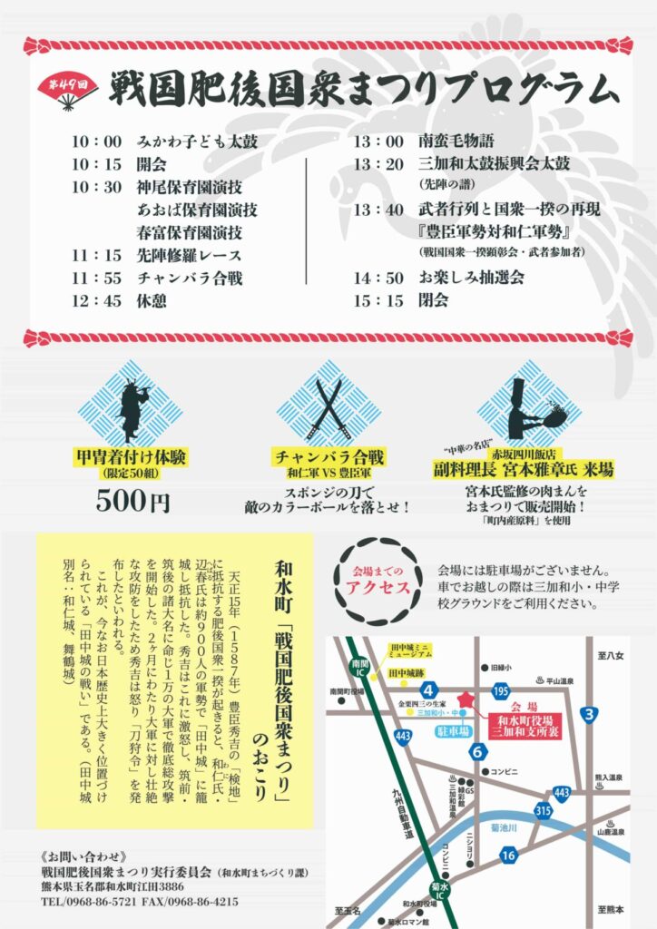 | お問い合わせ | 戦国肥後国衆まつり実行委員会(和水町まちづくり課内) |