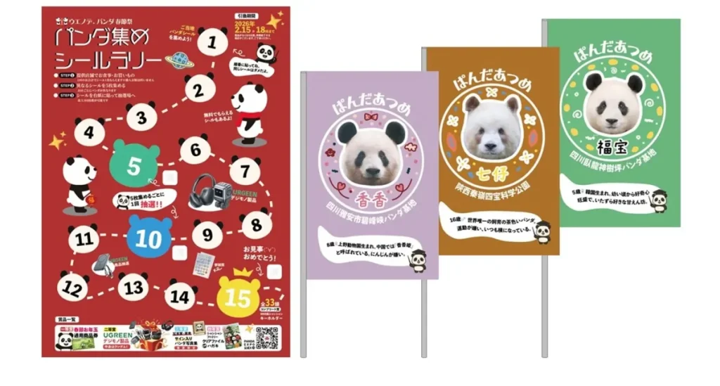 会場内のブースを巡り、30種類以上の「ご当地パンダ」シールを集める参加型イベントです。四川料理ブースでは四川省のパンダ、東北料理ブースではその地域のパンダといったように、各地のグルメとパンダを同時に楽しめます。