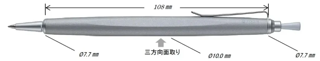 - 流線形×三角軸:直径7.7mmから10.0mmへと変化する流れるような丸軸の中央を、三方向から面取り。指が自然に収まる三角軸の安定感と、丸軸のエレガントさが融合しています。