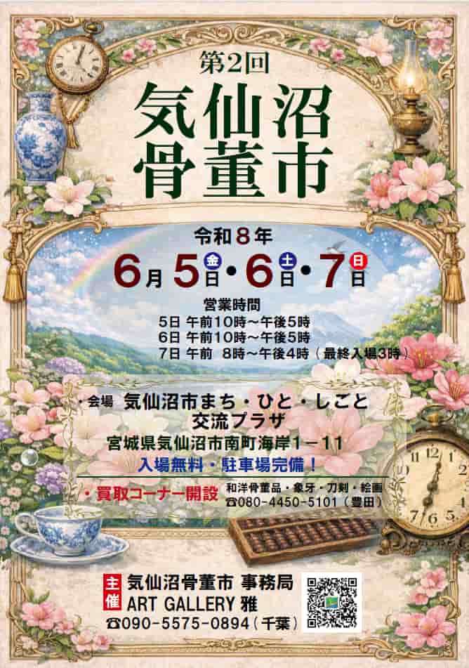 【2026/6/5~7開催】第2回 気仙沼骨董市!港町・気仙沼に和洋骨董や美術品など「時の宝物」が集結