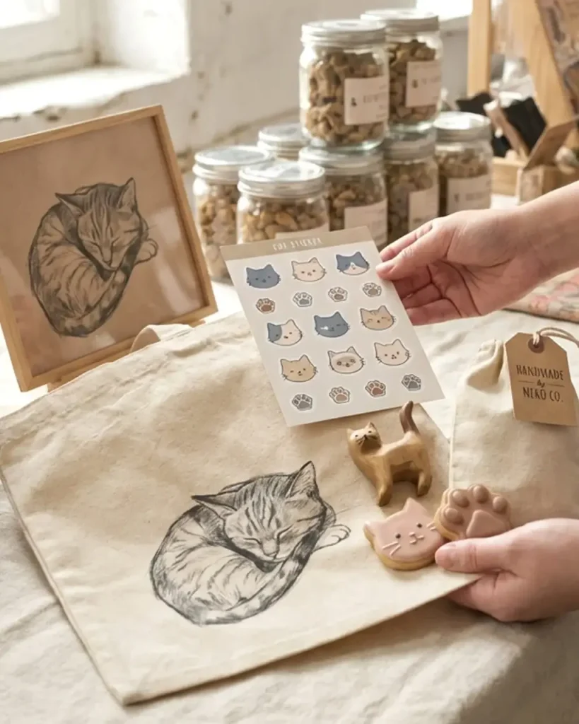 • 猫モチーフ雑貨・アパレル: 「うちの子に似ている」が見つかるかも。飼い主さんの日常を彩る猫デザインの雑貨やアパレル。