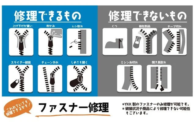 - 【無料・事前予約制】ファスナーリペアブース: お気に入りの服やバッグのYKK製ファスナーを専門スタッフが無料で診断・修理サポート。諦めていたアイテムが蘇るかもしれません。