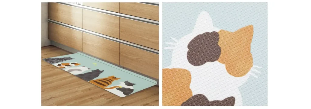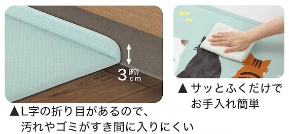 【2026/2/22は猫の日】ニトリから「お掃除ラクラク猫柄キッチンマット」新発売!L字構造でゴミをブロック