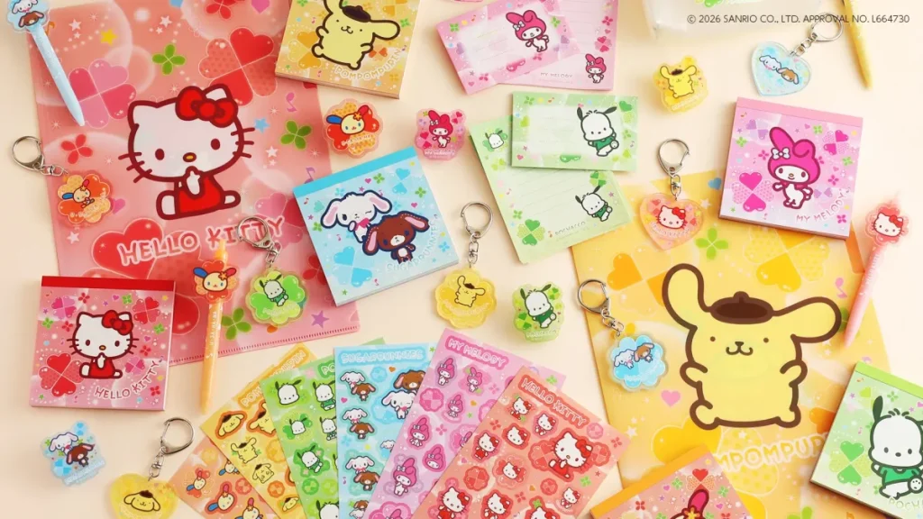- サンリオキャラクターズ: 「平成ポップ」や「ラッキーモチーフ」をテーマに、メモ帳やキーホルダーなど68品目を限定販売。