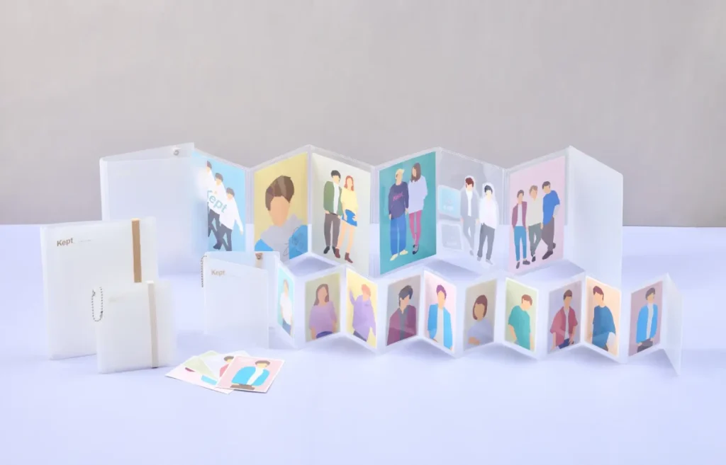 • keptジャバラカードホルダー:パッと開いて自立する構造。トレカなどの整理に便利で、持ち運びのしやすさも魅力です。