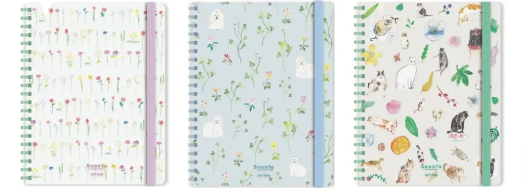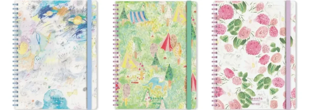 • Sooofa×ペーパーメッセージ:柔らかいリングが心地よいノート。本山印刷の温かみのあるデザインが毎日の記録を彩ります。