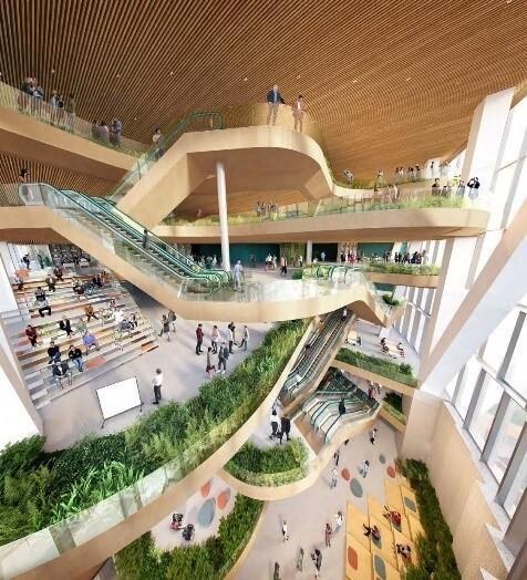 ただのオフィスビルではなく、地下2階から地上5階までは「アクセラリウム」という、7層もの吹き抜けが広がる開放的なエリアになる予定です。地下街とも直結するので、雨の日でも濡れずにアクセスできるのが嬉しいポイントですね。