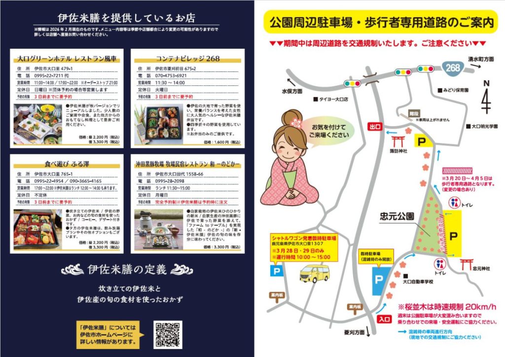 ウィーク期間中の週末、3月28日(土)と3月29日(日)の2日間は、さらに特別なイベントが用意されています(10時〜16時)。この2日間に限り、会場周辺をスムーズに移動できる「シャトルワゴン」の運行も予定されています。家族連れで混雑が気になる方も、シャトルワゴンを上手に活用して、伊佐の春を満喫しましょう。