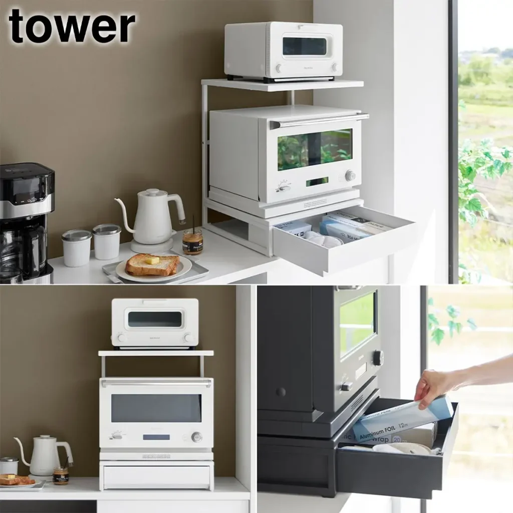 【2026/3/27発売】山崎実業「tower」新商品まとめ|キッチン家電下ラックや持ち運べるダンボールストッカーなど、家事を劇的に変える新作6選