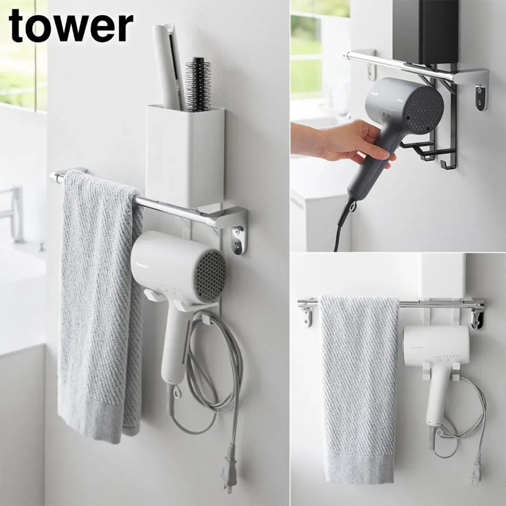 ・タオル掛け上/マグネット ドライヤー&ヘアーアイロンホルダー