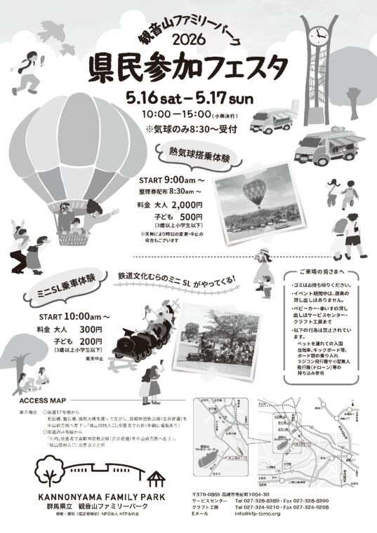 【2026/5/16-17開催】群馬県立観音山ファミリーパーク「県民参加フェスタ」!ミニSLや世界の屋台など家族で楽しむ2日間