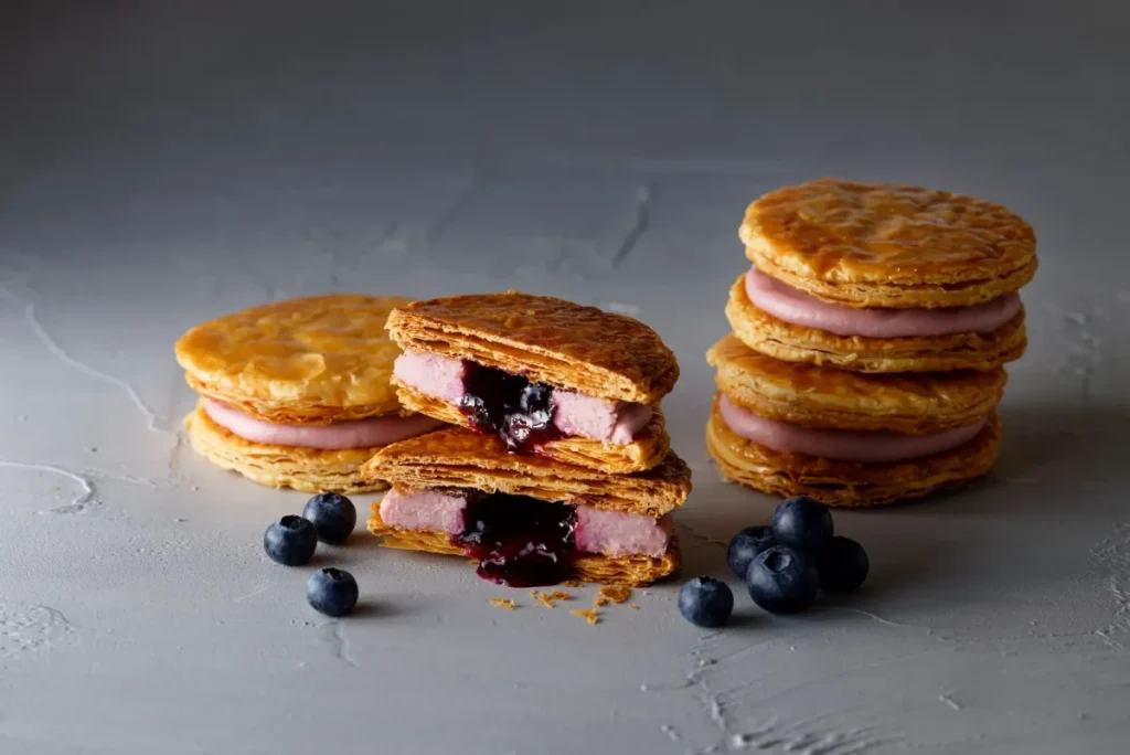 - ザクリパイ ブルーベリー(600円):ザクリとした食感の生地から、とろりとしたソースがあふれ出す冷製スイーツ。