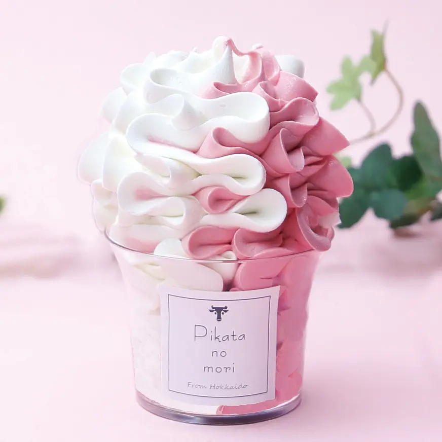 旬の桜ますとウニ、ホタテを一度に味わえる贅沢な一杯。自分へのご褒美ランチにいかがですか? - [森町]ピカタの森 駒ヶ岳牛乳/芸術ソフト~苺~(税込651円):