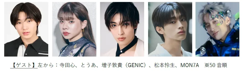 俳優として大活躍中の寺田心さん、GENICの増子敦貴さん、大河ドラマでも注目の松本怜生さんなど、若手実力派俳優陣の登場に期待が高まります。