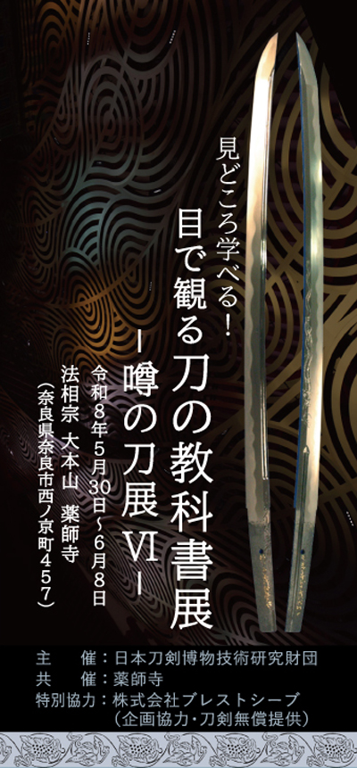 2026年5月30日(土)から6月8日(月)までの10日間、奈良県の薬師寺 食堂(じきどう)にて、「見どころ学べる!目で観る刀の教科書展―噂の刀展Ⅵ―」が開催されます。