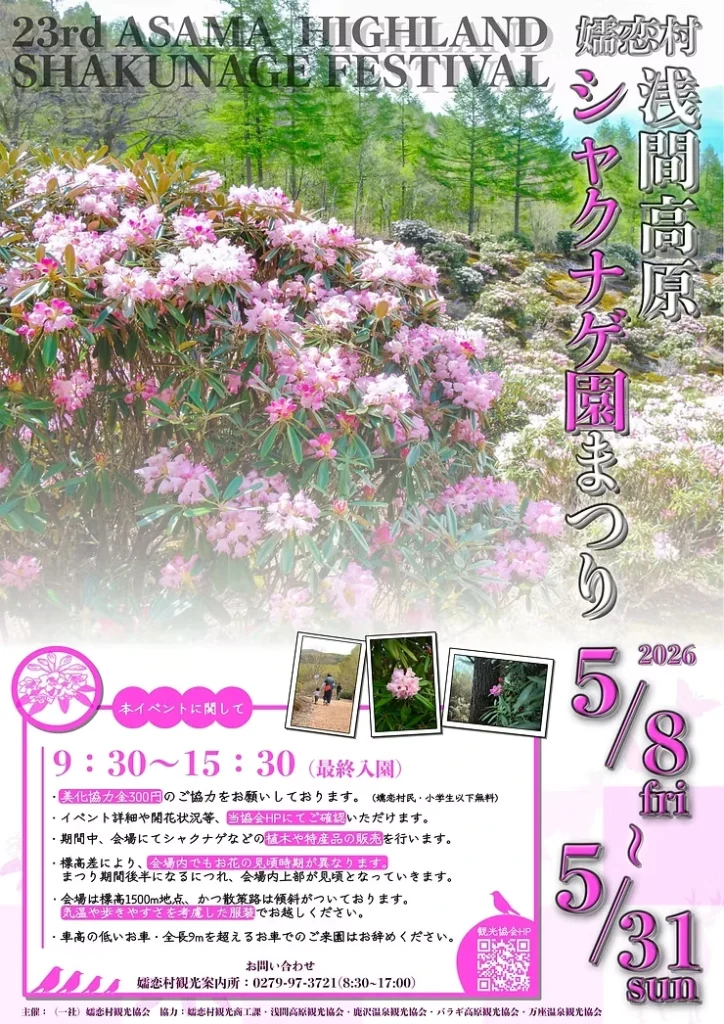 【2026/5/8〜5/31開催】第23回浅間高原シャクナゲ園まつり|標高1,200mの絶景に咲く15万株の彩りを楽しもう