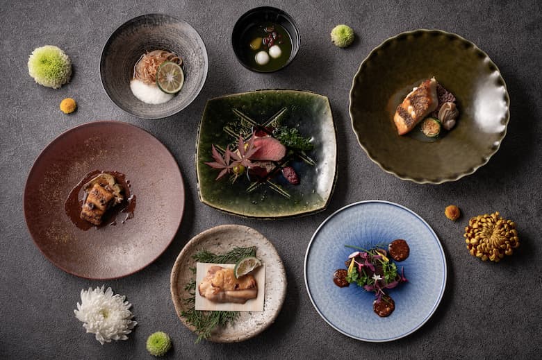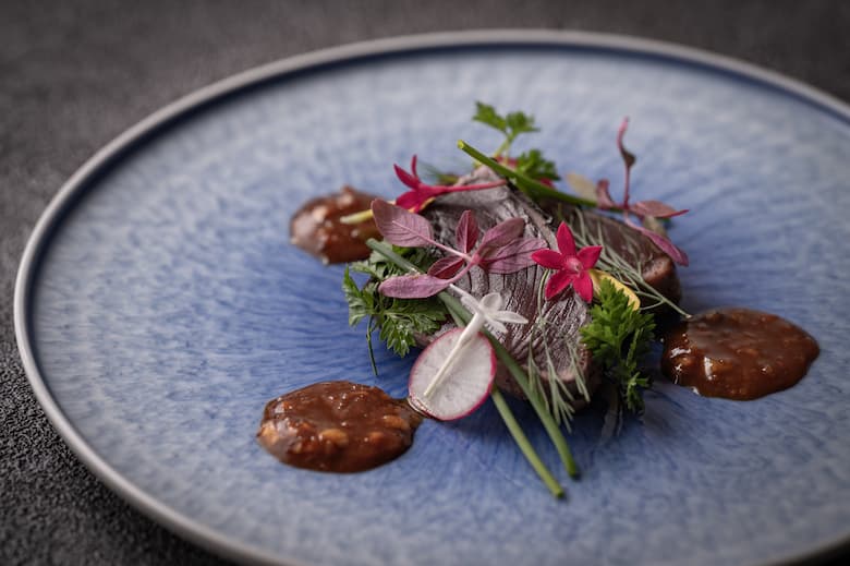 葛飾北斎や歌川広重の浮世絵作品に登場する食材や情景からインスピレーションを得た、芸術的なコース料理が提供されます。