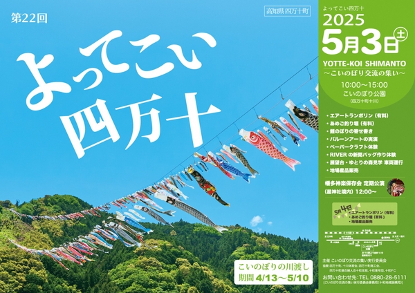 【2025/5/3】高知・四万十川で「よってこい四万十」開催。500匹の鯉のぼりが空を泳ぐ「約束」の絶景