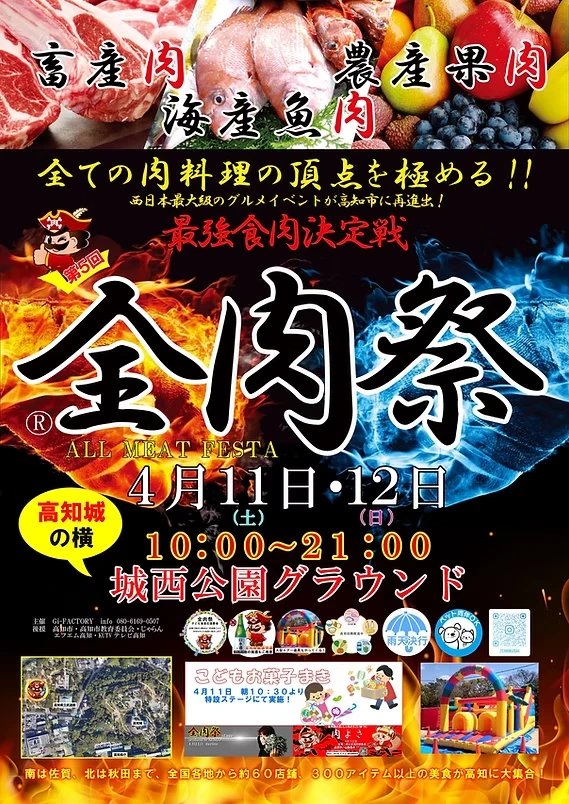 【2026/4/11〜4/12】高知・城西公園で「第5回 全肉祭」開催!300種超の肉グルメと「肉よさ」が集結する2日間
