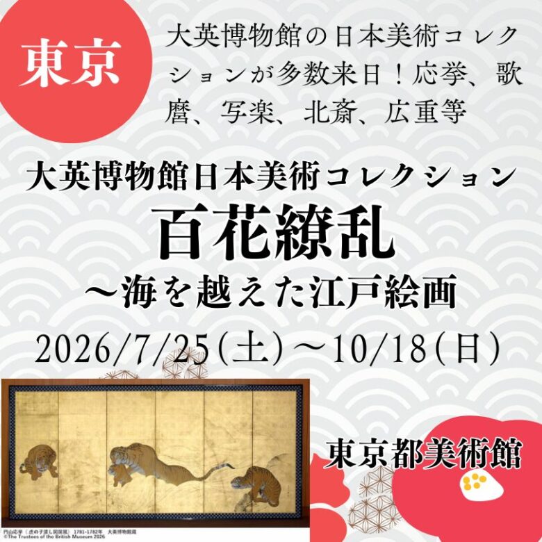 2026年7月25日(土)から10月18日(日)まで、東京都美術館にて、開館100周年を記念した特別展「大英博物館日本美術コレクション 百花繚乱~海を越えた江戸絵画」が開催されます。大英博物館が誇る4万点の日本美術コレクションから、江戸時代の絵画や浮世絵の傑作を厳選して紹介します。 -