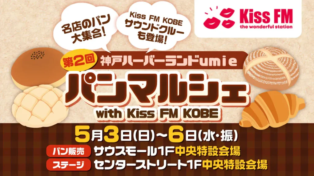 【兵庫・神戸市】2026/5/3〜6開催「第2回 神戸ハーバーランドumieパンマルシェ」!Kiss FM KOBEとの豪華コラボ