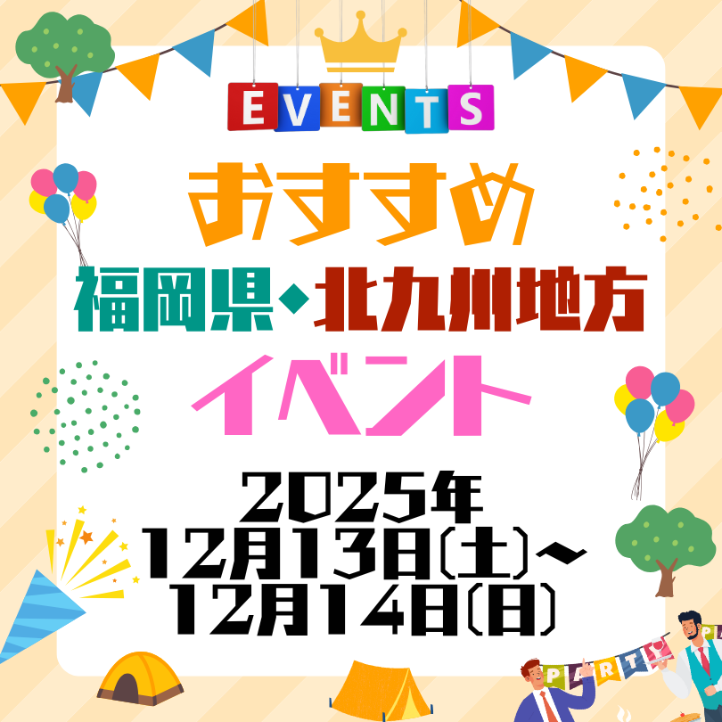 この記事では、2025年12月13日(土)~12月14日(日)に開催される北九州地方(※)の注目のイベントをピックアップしてご紹介します。 ※北九州市・京築地方(行橋市、豊前市、京都郡、築上郡)・遠賀地方(中間市、遠賀郡) 12月13日(土)~12月14日(日)北九州地方の…