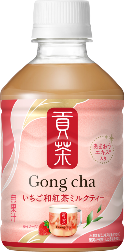 今回新たに発売されるのは、ゴンチャの期間限定商品の中でも人気の高い「いちごフレーバー」を使用した、ペットボトル飲料として初のフルーツミルクティーです。