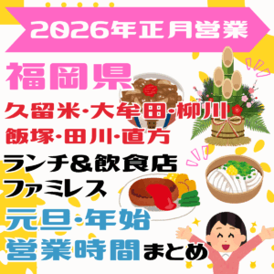 - 【久留米・大牟田・柳川、飯塚・田川・直方】2026年元旦・正月・年始のランチ&飲食店・ファミレス営業時間