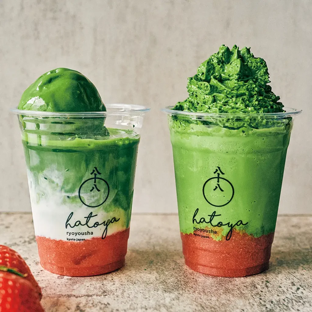 • 八十八良葉舎(京都):濃厚な抹茶と爽やかな苺を合わせたラテフロートやシェイクなど、贅沢な和スイーツ。