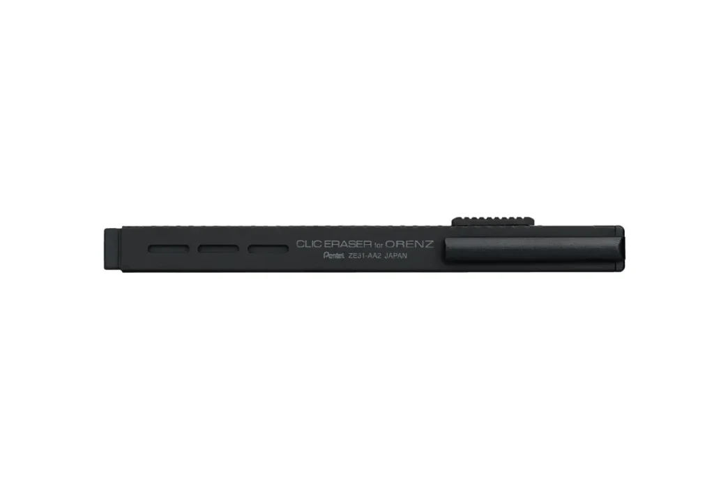 - 限定ホルダー式消しゴム:消しゴム本体まで黒で統一された特別仕様。「CLIC ERASER for ORENZ」のロゴが輝きます。