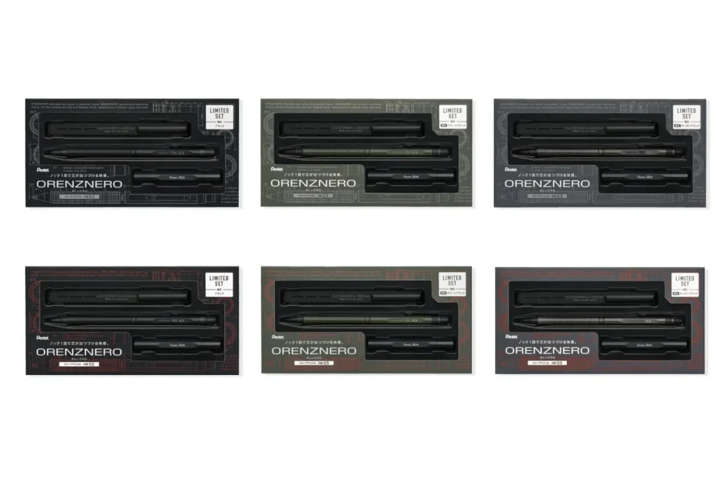 2017年の発売以来、その圧倒的な存在感と所有感で多くのユーザーを魅了してきたオレンズネロ。今回の限定セットは、名前の由来である「黒(NERO)」の世界観をさらに深掘りした、限定カラー2色を含む3色のラインナップです。さらに、本体のデザインコンセプトを継承した「金属製替芯ケース」などが同梱され、まさにコレクターズアイテムと呼ぶにふさわしい仕上がりとなっています。