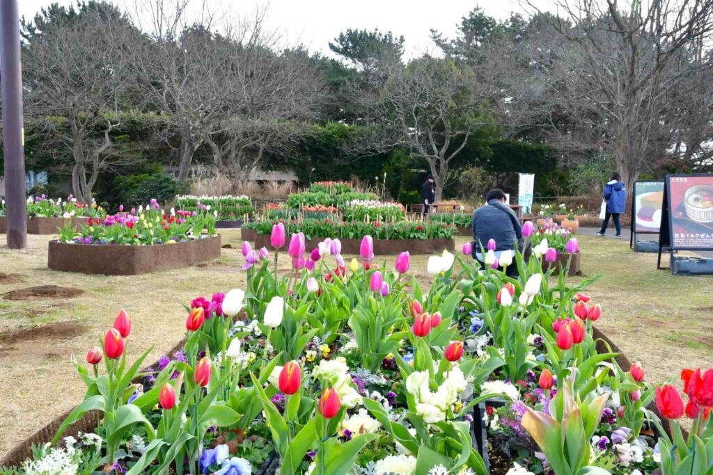 アイスチューリップは、球根をあらかじめ低温処理することで「春が来た」と錯覚させて冬に咲かせる特別な花。春のチューリップよりも花もちが良く、鮮やかな色彩を長く楽しめるのが魅力です。園内では「お正月」をテーマにした華やかなエリアと、冬の草花とのコラボレーションを楽しめるエリアの2箇所で、合計約1万5500本が咲き誇ります。