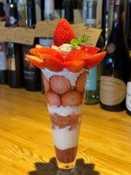 - 福島県産いちご スイーツ:いちごパフェ、いちごロールケーキ。