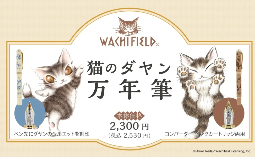 絵本作家・池田あきこ氏が描く「猫のダヤン」とコラボした万年筆が2026年1月30日より新発売。アイボリーとブラウンの2色展開で、ペン先にはダヤンのシルエットの刻印入り。初心者にも優しいコンバーター・カートリッジ両用式で、書く時間が楽しくなる一本です。 -